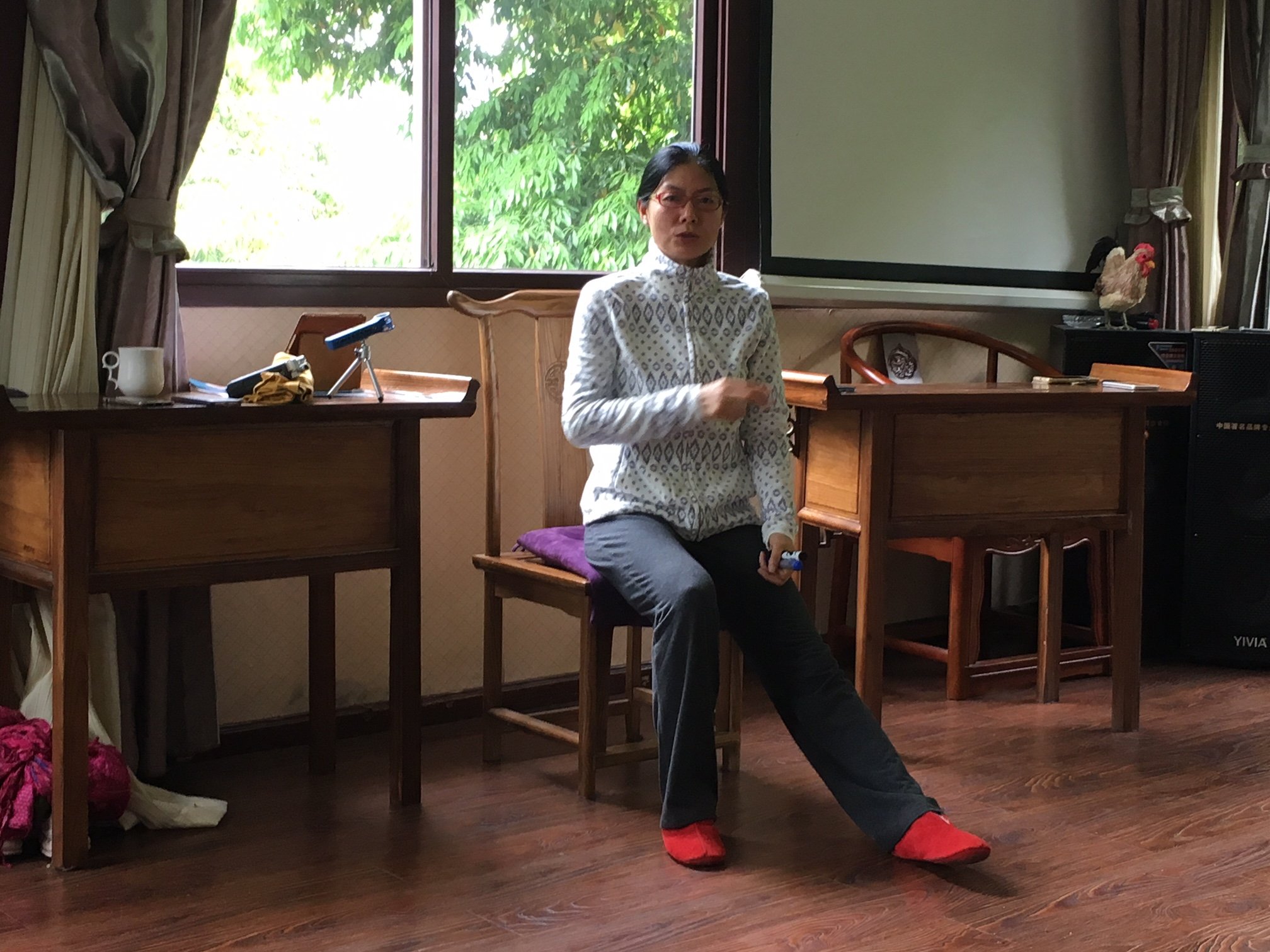 Die Übungen im Zhineng Qigong zeichnen sich durch stille Positionen oder durch einfache Bewegungen aus, die vor allem in der Langsamkeit ihre Tiefe entfalten.